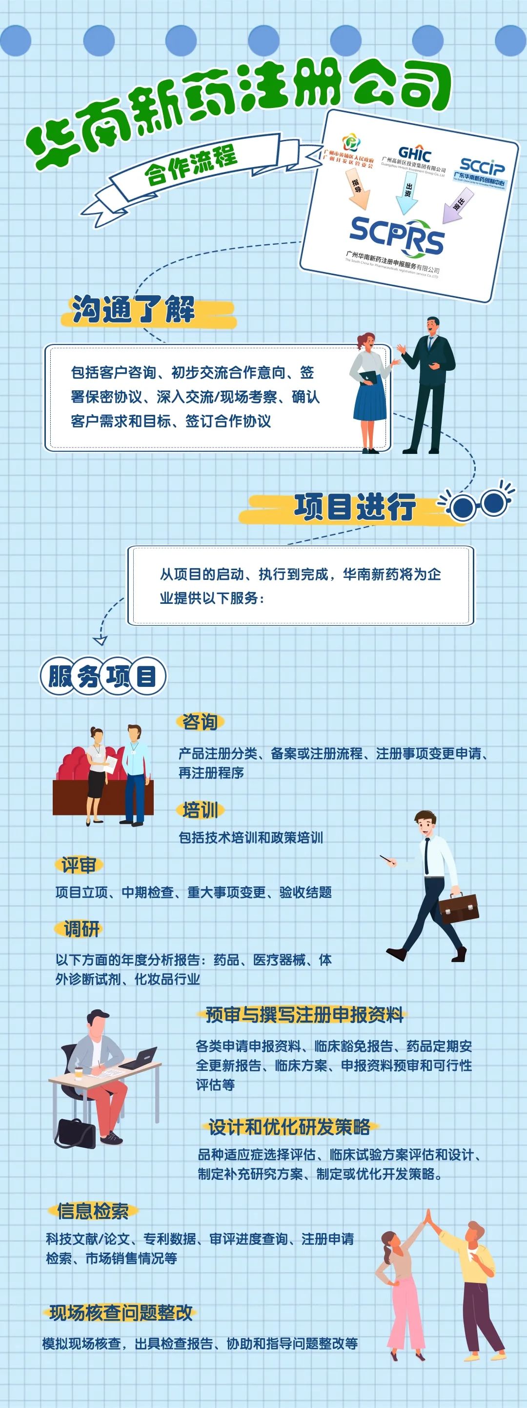 广州华南新药注册服务有限公司(后称:华南新药注册公司)由广东华南新药创制中心和广州高新区投资集团有限公司共同出资,于2021年下半年在广州国际生物岛正式投入运营,其将通过企业化运作,为黄埔区、广州市及国内外的药品医疗器械企业提供“早期介入、政策法规咨询、技术指导、申报代理”等全方位、专业化服务。